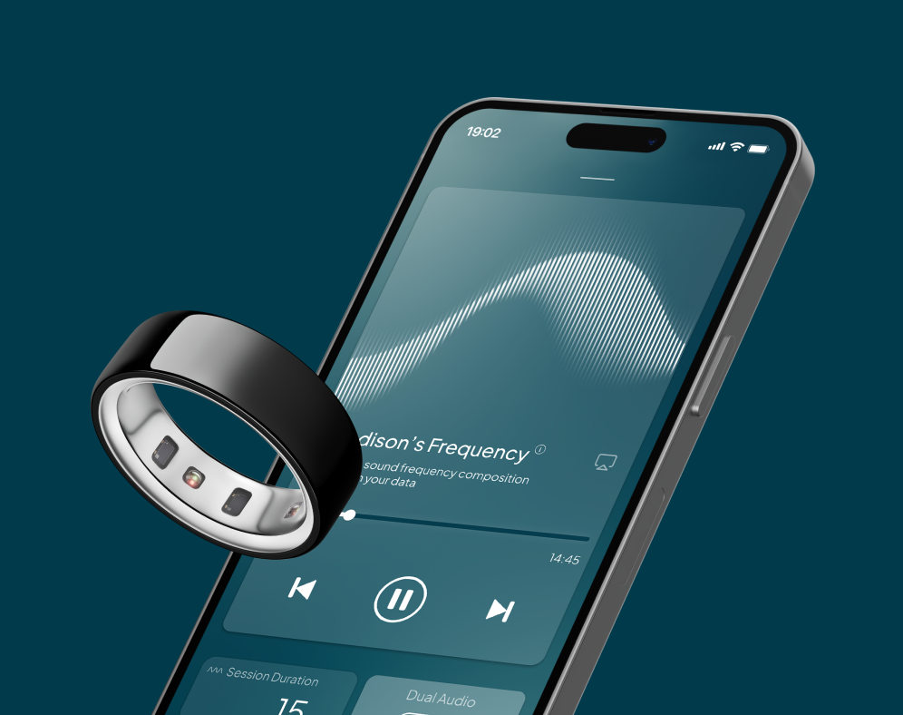 Oura captures key insights from your body, like sleep quality, heart rate variability (HRV) and heart rate, while the Soaak App uses that data through our Find My Frequency™ feature to generate audio frequencies tailored to your current state.